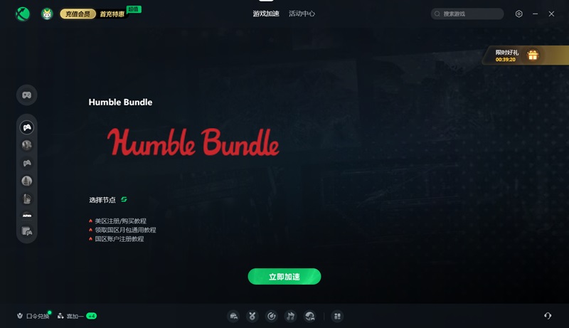 点击“开始加速”按钮,迅游加速器将优化网络连接,确保能够快速稳定地访问Humble Choice美区官网。