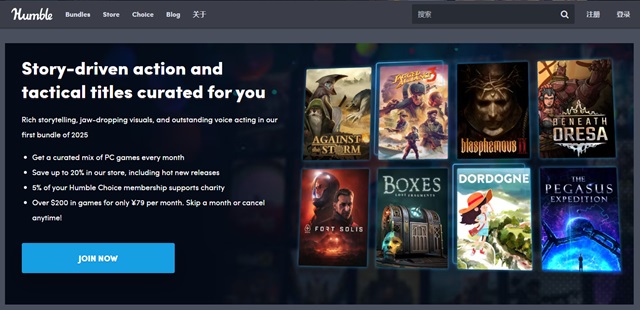 账号注册完成后,登录官网,就可以开始浏览Humble Choice美区的丰富游戏库了。