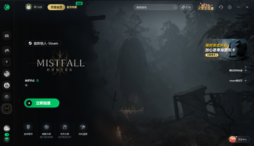 若游戏启动后直接弹出“Code-1”错误,建议优先使用迅游加速器解决网络兼容性问题。迅游加速器可通过中转专线连接游戏服务器。启动迅游后搜索【雾影猎人】加速后,即可有效优化游戏网络。