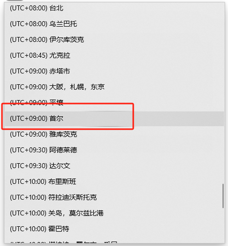将时区切换到【韩国首尔】