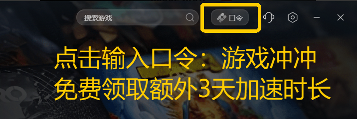 客户端右上方【口令】,输入【游戏冲冲】免费领取3天加速时长