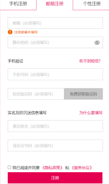 这里有三个注册选项,小编推荐大家使用【邮箱注册】或者是【个性注册】