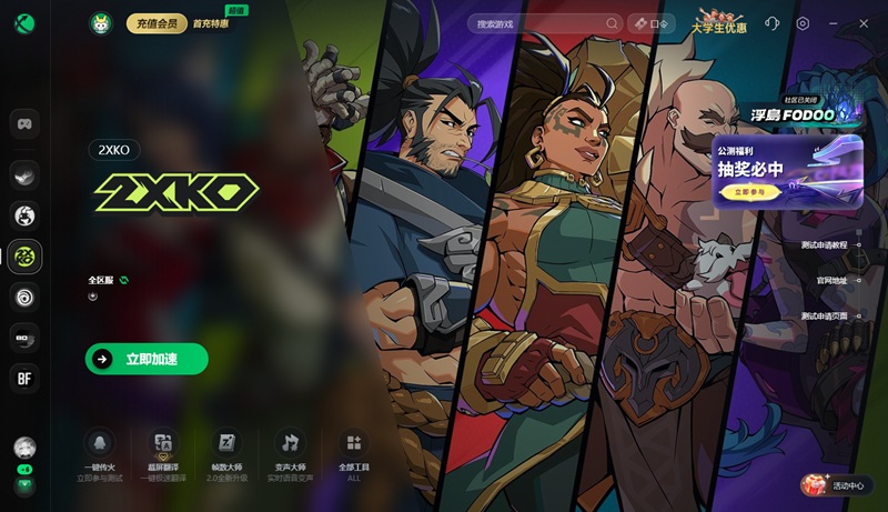 因为《2XKO》服务器不在国内,国内玩家直接操作易遭遇下载限速、注册页面加载失败、汉化设置卡顿等问题。推荐使用迅游加速器,搜索并加速“2XKO”。迅游依托全球优质节点集群与智能云加速技术,通过独享专线搭建跨境传输通道,可大幅降低网络延迟,解决平台加载超时、下载进度停滞等问题,为后续操作提供稳定网络环境。