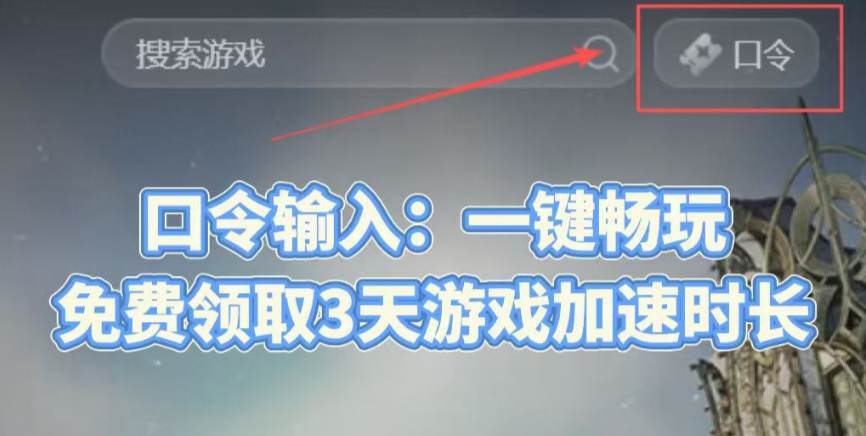 点击客户端右上方【口令】,输入【一键畅玩】获取额外时长