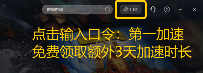 点击右上角【口令兑换】输入口令【第一加速】免费领取3天加速时长