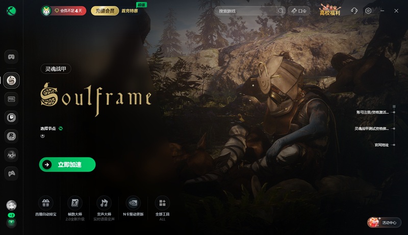《祖灵战甲》官网地址可以直接从迅游加速器页面进入。打开迅游客户端,搜索“灵魂战甲”点击“加速”,加速完成后可以优化网络环境,流畅访问官网进行账号注册和游戏下载。加速完成后,点击加速页面的“官网地址”即可跳转至《祖灵战甲》官网页面。