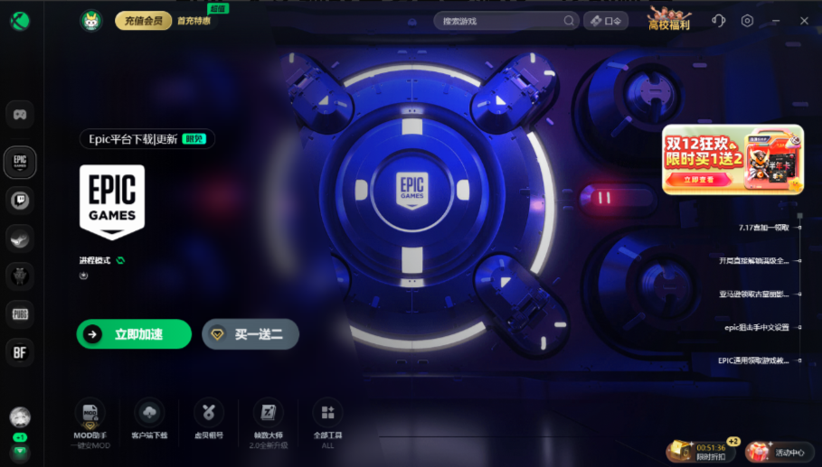 游戏平台服务器位于海外,直接连接可能存在延迟或丢包,从而出现入库游戏时报错、显示无法领取,可以打开迅游加速器,右上方搜【epic】一键优化游戏服务器连接。支持各游戏平台限免哦!