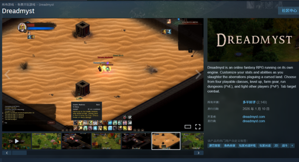 《恐惧之谜 Dreadmyst》是一款由单人开发者打造的免费MMORPG游戏。游戏提供圣骑士、法师、游侠和牧师四大职业,遵循传统的坦克、治疗和DPS“铁三角”定位,核心玩法围绕4人地下城和1v1或2v2小规模PvP竞技场展开!还不知道游戏如何下载注册和汉化吗?下面小编给大家介绍完整的游戏攻略!