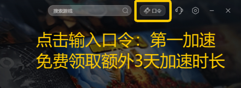 点击右上角【口令兑换】输入口令【第一加速】免费领取3天加速时长