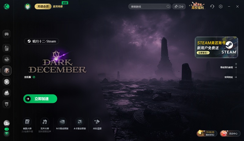 网络优化完成后,还可以获得Steam外区账号才能下载安装《暗月十二》。