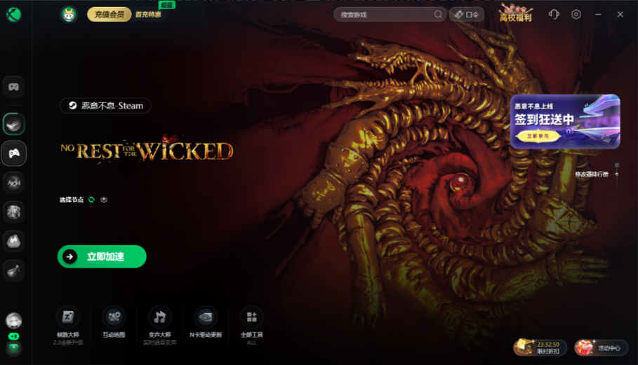 防止游戏裸连出现联机失败、游玩卡顿等问题,玩家可以打开迅游加速器,搜《恶意不息》进入一键优化游戏网络连接。