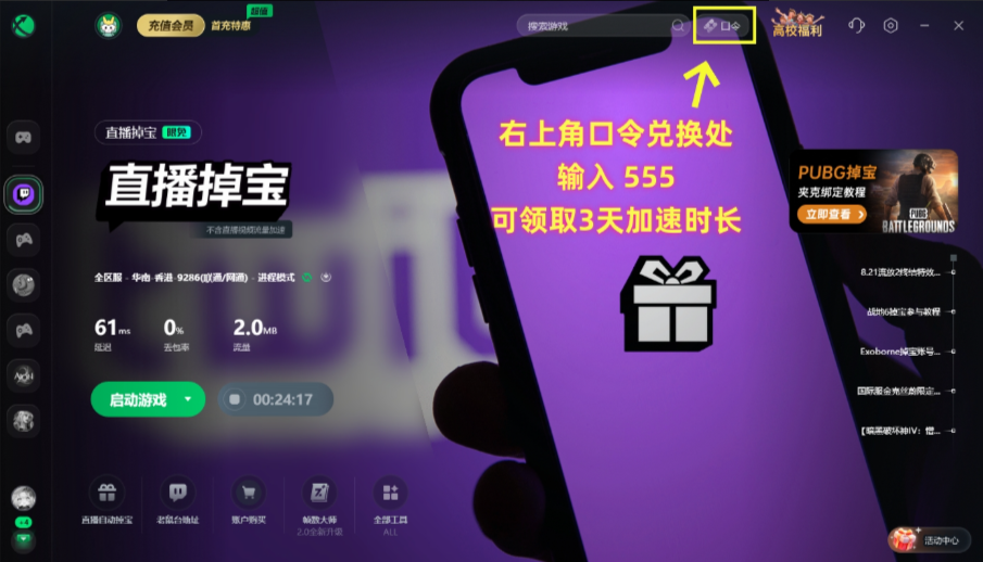 为避免网络干扰导致大家领取奖励失败,打开迅游加速器后搜索《twitch》后进行加速,加速一方面可以帮助大家快速领取到游戏物品,另一方面可以全程流畅看完直播不会出现掉帧或者卡顿的问题。