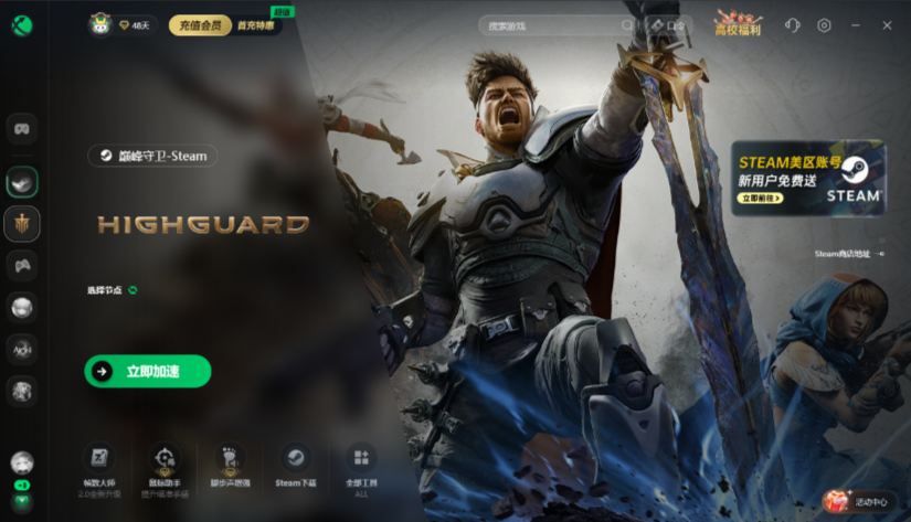 我们在加速页面,可以免费领取一个steam外区账号。因为Highguard巅峰守卫在国区玩不了,这款游戏是锁国区的,现在迅游免费赠送大家外区账号,只需点击参与活动,即可领取。