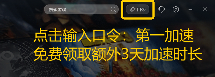 点击右上角【口令兑换】输入口令【第一加速】免费领取3天加速时长