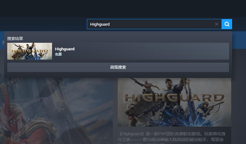 领取账号之后,我们登录steam,在steam商店搜索【Highguard】即可找到游戏。