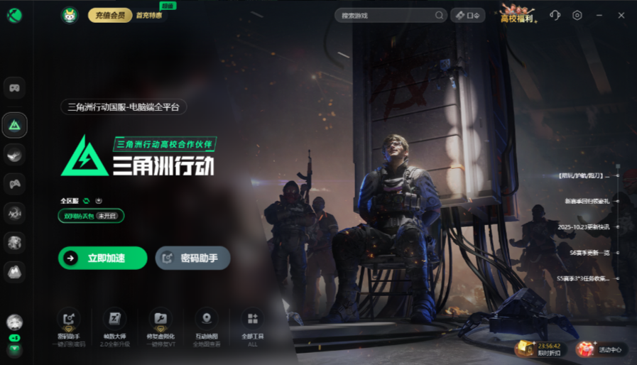 密码工具的获取渠道多样,这里玩家可以先打开迅游加速器,搜《三角洲行动》一键优化游戏网络连接,还可以有效减少游戏卡顿和丢包等问题。