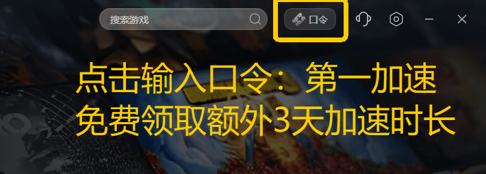 点击右上角【口令兑换】输入口令【第一加速】免费领取3天加速时长
