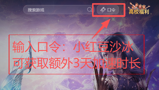 点击右上角【口令兑换】输入口令【小红豆沙冰】免费领取3天加速时长