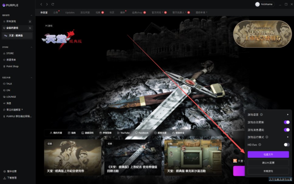 游戏闪退通常与系统兼容性或文件完整性有关,玩家可以先更新显卡驱动至最新版本,检查电脑配置,确保满足游戏最低配置要求。其次在PURPLE平台中找到游戏设置,选择检查文件,检验游戏文件并自动修复。
