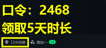 点击左下角【口令兑换】输入口令【2468】免费领取5天加速时长