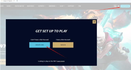 创建账号很简单,我们只需要进入到英雄联盟美测服PBE官网,点击右上角的PLAY NOW,点击创建账号
