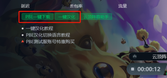 游戏下载和汉化我们可以分别点击迅游页面的PBE一键下载和一键汉化