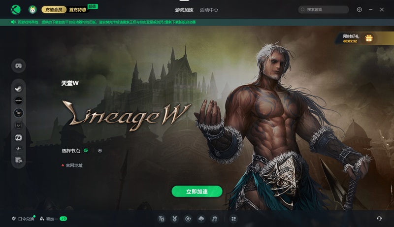 《天堂W》的官网入口,可以直接在迅游加速器内找到。打开迅游加速器,搜索“天堂W”加速,加速之后即可看到加速界面的“官网地址”,点击即可进入《天堂W》官网网页。没有加速时长的话,可以点击迅游客户端的口令兑换,输入“迅游好用”领取免费加速时长。