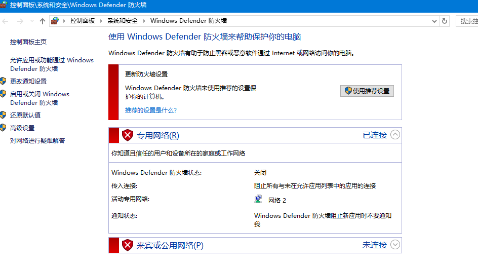 解决办法三:关闭防火墙