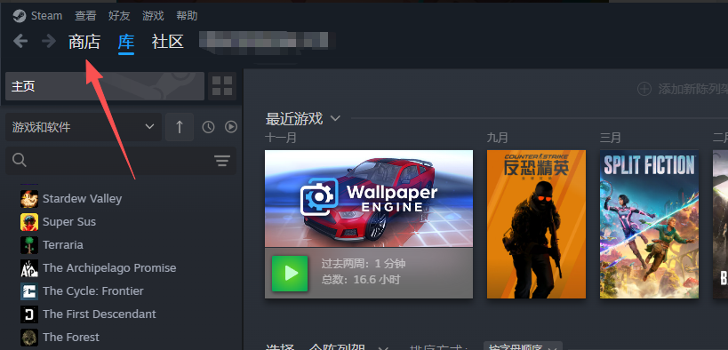 网络优化之后打开steam,点击左上角商店进入
