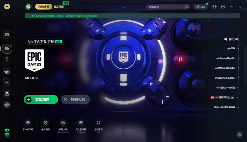 迅游加速器提供了Epic客户端下载工具,点击“Epic平台下载”即可开始下载。