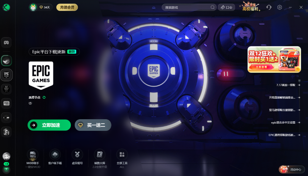 想要流畅在Epic上领取游戏,需要用到加速器,因为Epic是海外平台,不加速网络的话我们就会打不开epic从而无法领取免费游戏。