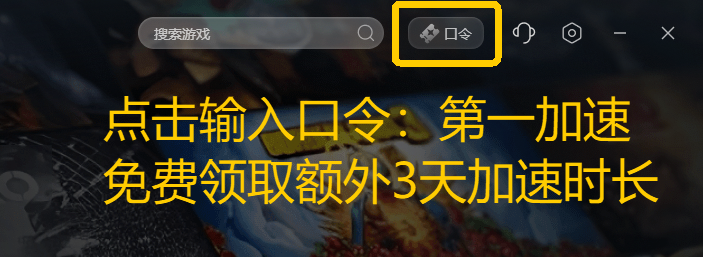 如果还想加速其他游戏可以点击右上角【口令兑换】输入口令【第一加速】免费领取3天加速时长
