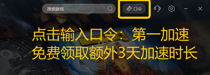 点击右上角【口令兑换】输入口令【第一加速】免费领取3天加速时长