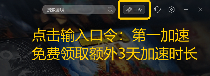 如果还想加速其他游戏可以点击右上角【口令兑换】输入口令【第一加速】免费领取3天加速时长